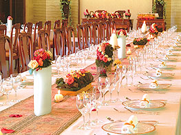 千秋公園内に、ひっそりとたたずむ千秋亭は、彌高神社の直会殿(なおらいでん:神への供えものを神事参加者にふるまう部屋)を改装して作られたフレンチレストラン。ノスタルジックでクラシックモダンのおしゃれな館内を1階、2階、お庭まで貸し切りの状態で利用できます。しかも1日1組限定です。そして評判を呼んでいるのが、披露宴を飾る気の利いたフランス料理。純和風とフレンチのコラボレーションがネオジャパネスクをクリエイト(創造)します。